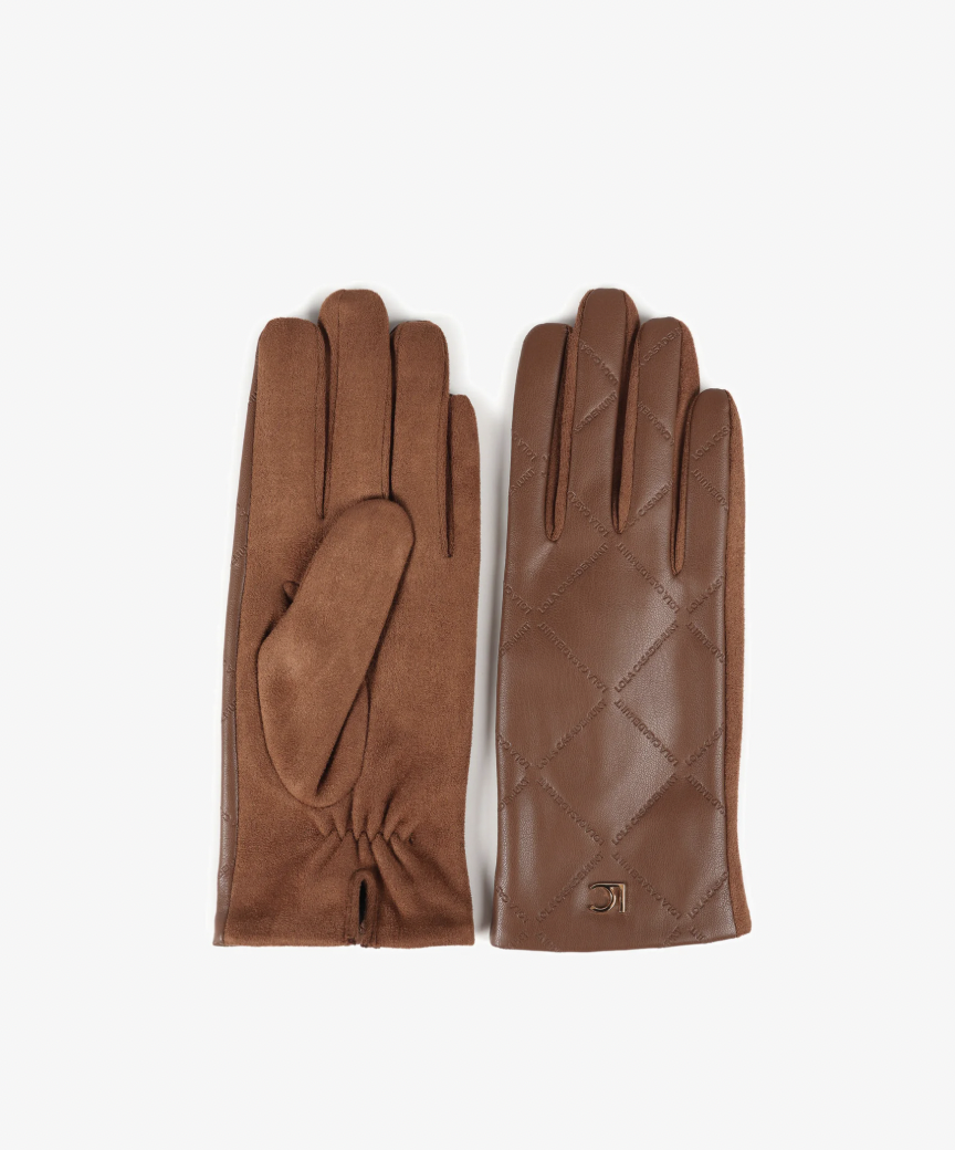 Elegant gloves in synthetic material with a cross-grid design. They feature a soft-touch finish and logo details. Include a warm lining for total comfort.