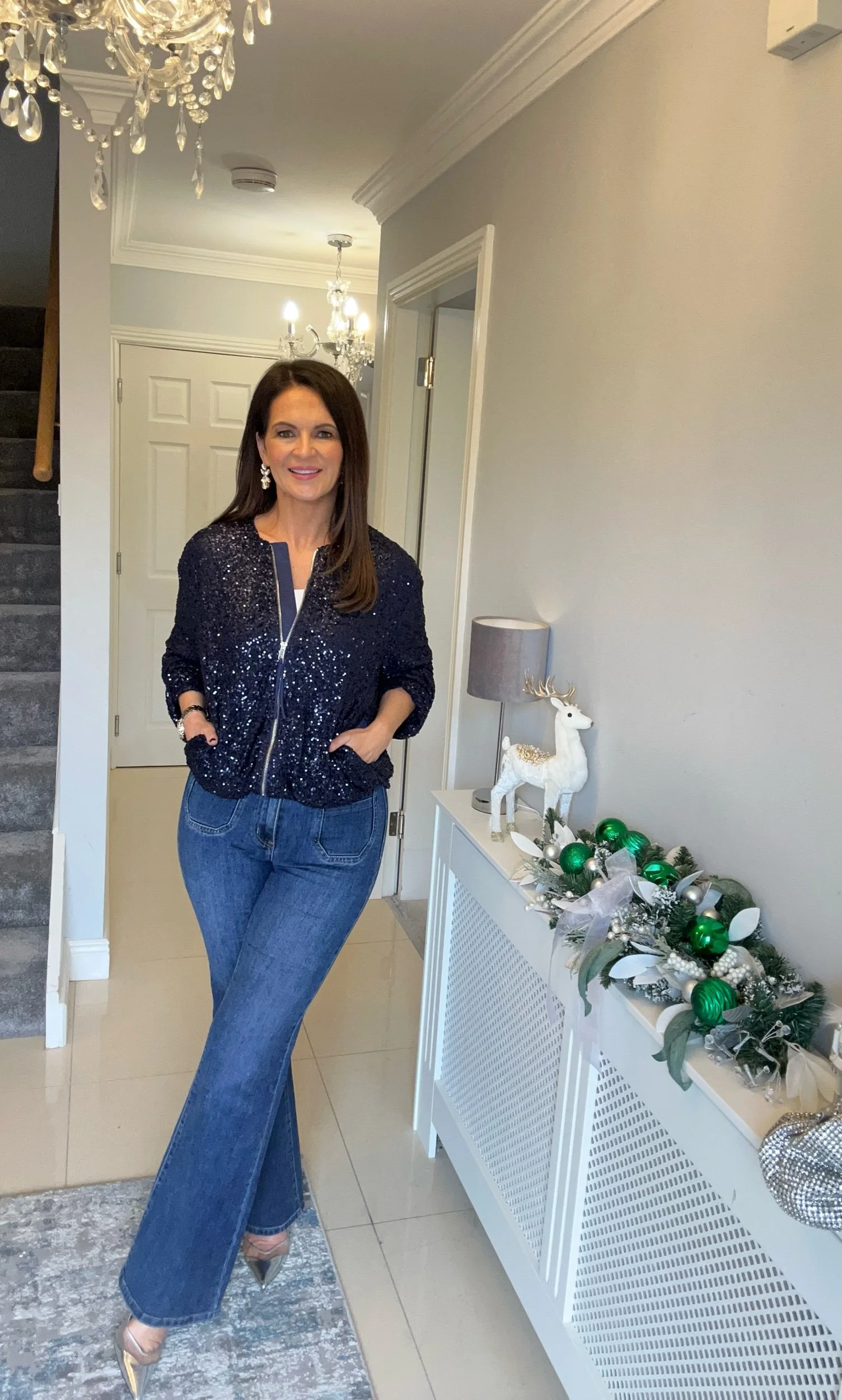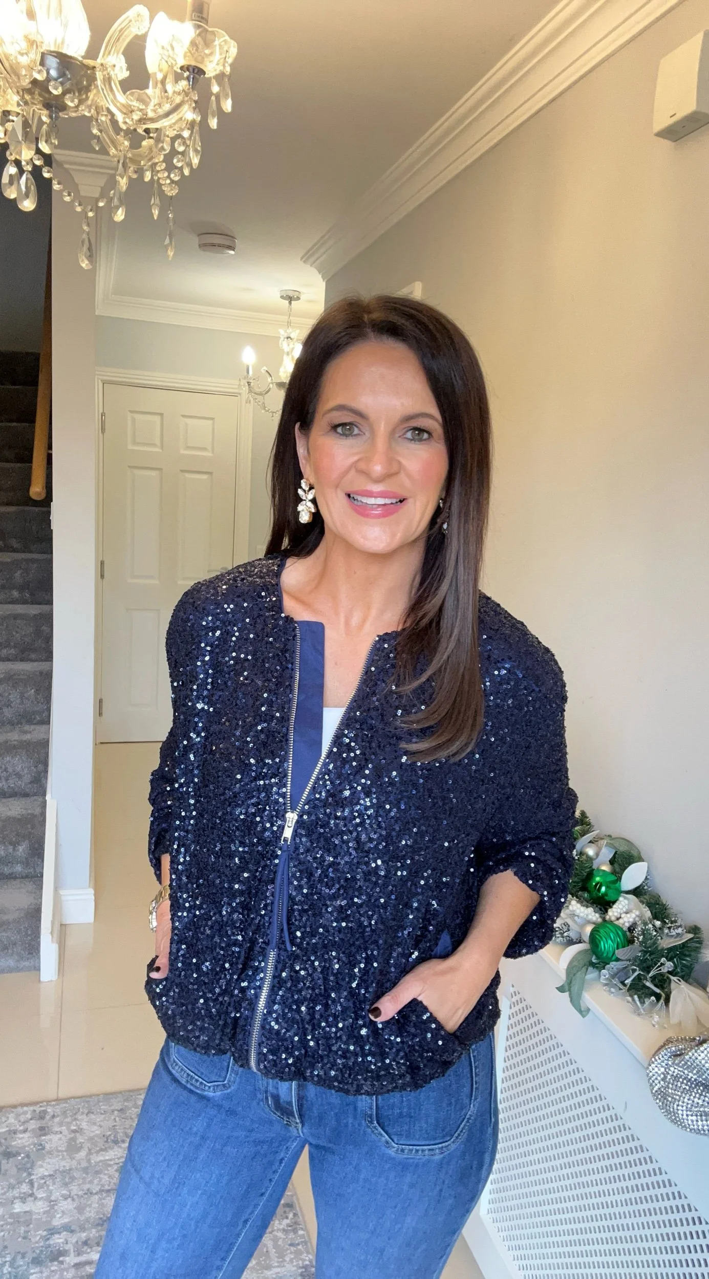 The Noelle Sequin Jacket is the perfect addition to your day or night event wardrobe. Embroidered sequin fabric is eye-catching, whilst the bomber style makes it comfortable for all-day wear. With a relaxed fit, zip opening, functional pockets, and elasticated cuff and hem, you'll be sure to sparkle in style. Fully lined. No irritation from sequins.