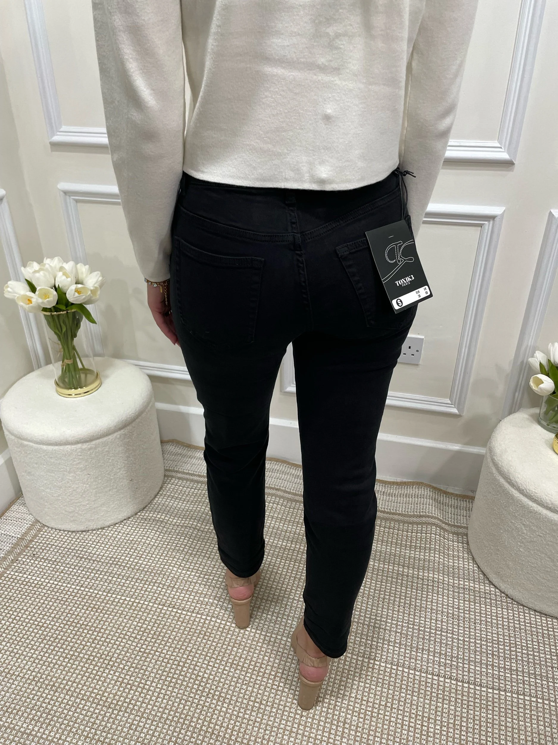 CHOCOLATE BROWN STRAIGHT LEG JEAN. THE WIDE LEG STYLE JEAN ELONGATES THE LEG. SOFT DENIM WITH A LITTLE STRETCH.