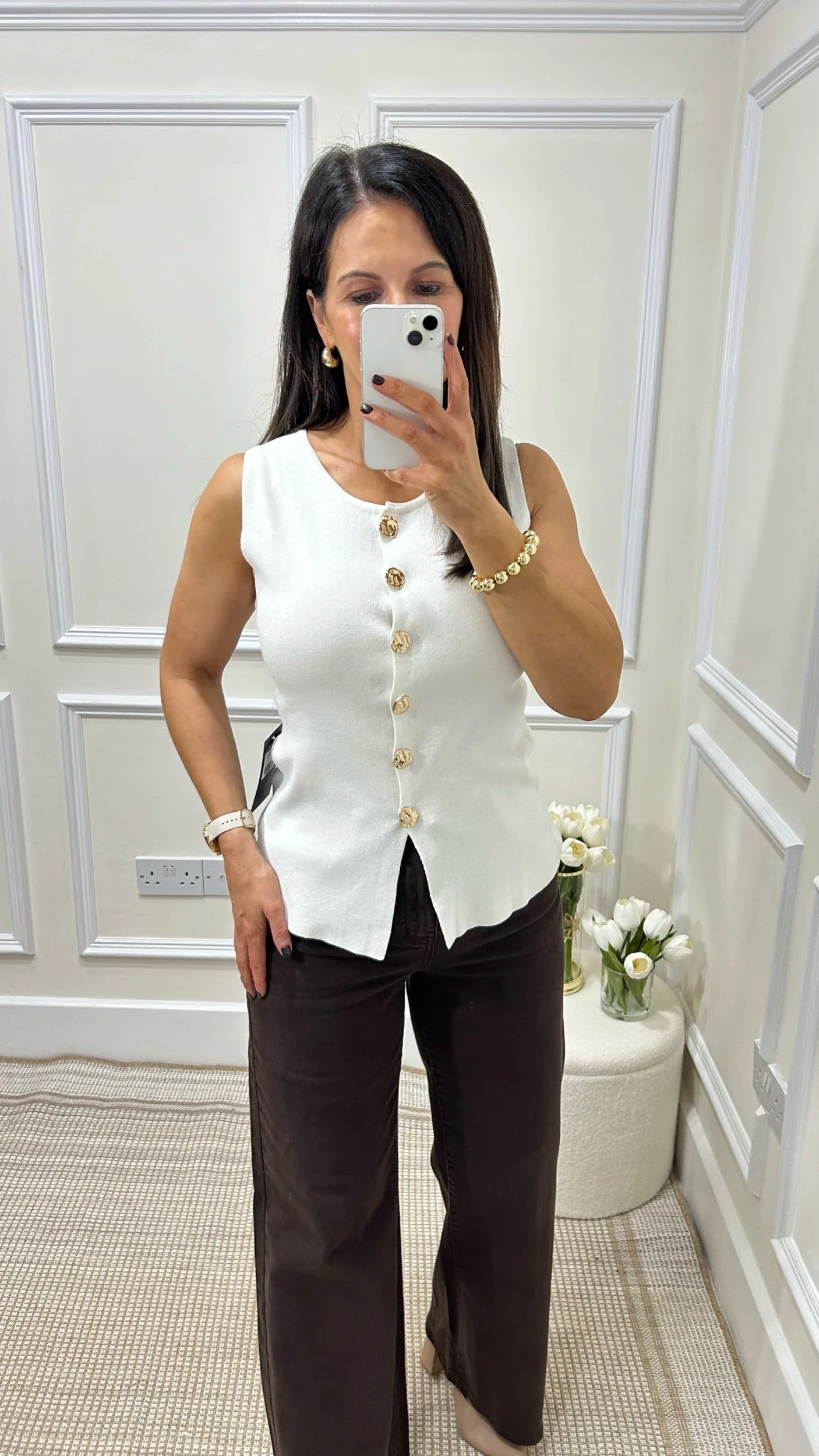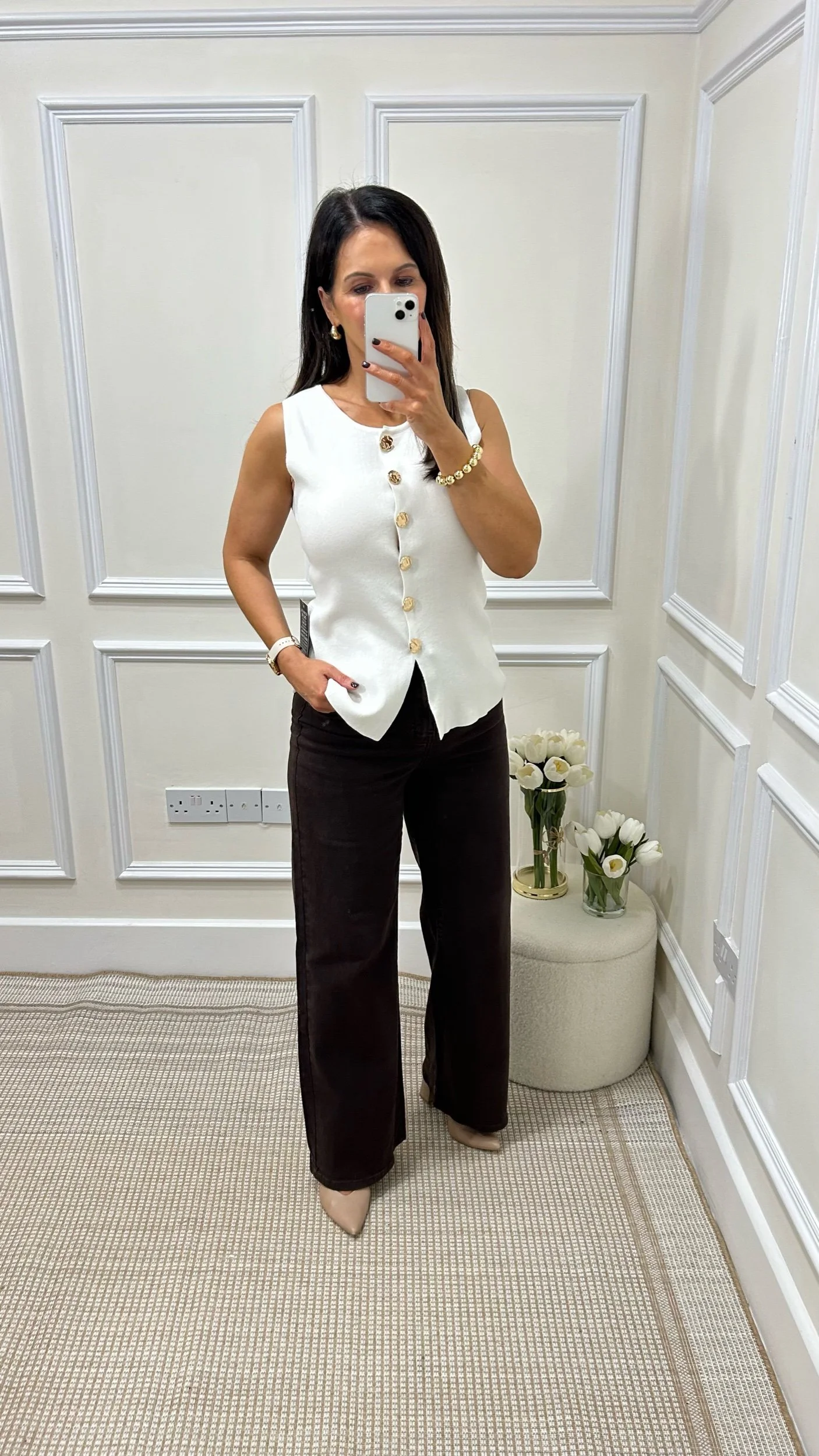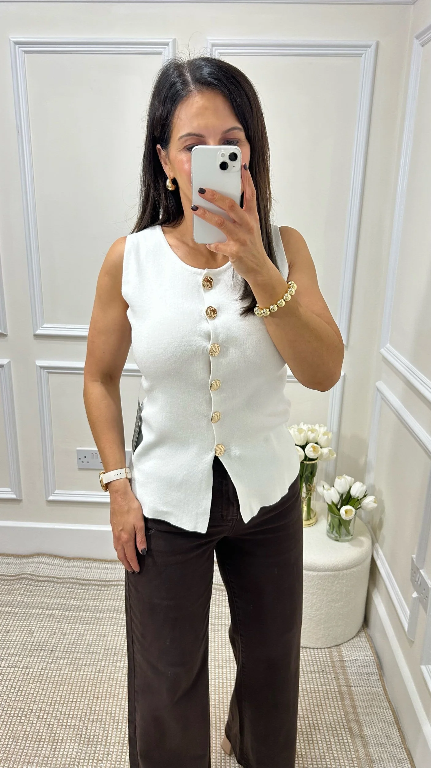 YVONNE BLACK TURTLENECK WITH THREE METALLIC SILVER BUTTON DETAILS ON THE SHOULDER. LONG SLEEVES WITH A SLIGHT PUFF AT THE SHOULDER. SLIGHTLY RIBBED FOR A SOFT AND STRETCHY FEEL.